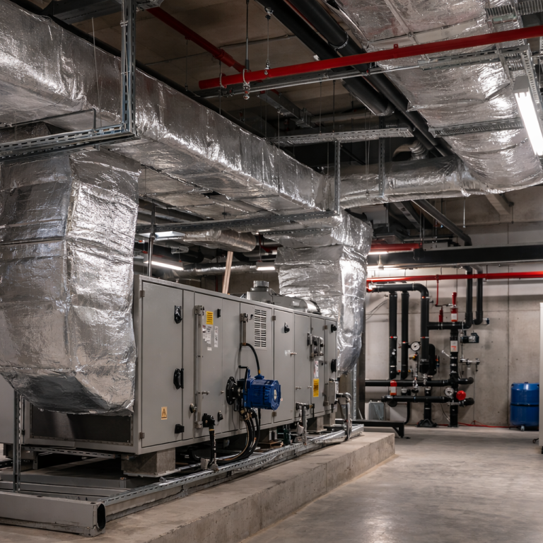 Nous assurons l’installation et la mise en service de centrales de traitement d’air, groupes froids, CTA, ventilation, climatisation à eau glacée, chambres froides et équipements multitechniques. Nos prestations intègrent aussi la mise en place de la tuyauterie, de l’électricité associée et du pilotage global du système.